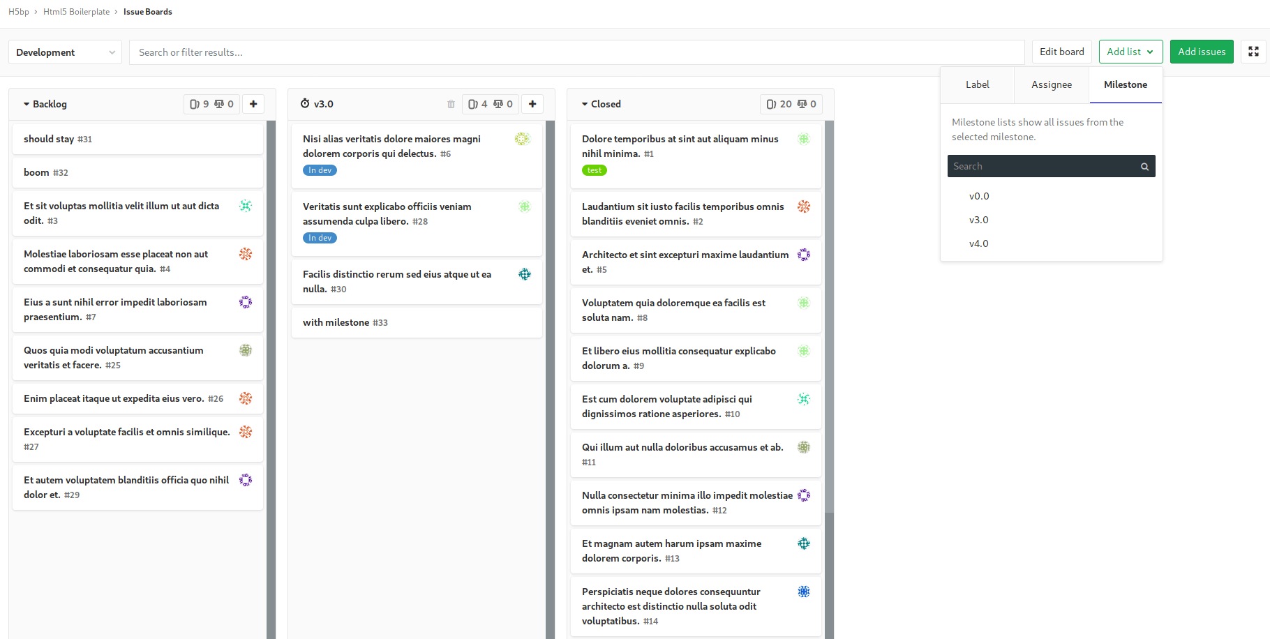As of 11.2, you're also able to create lists of a milestone. As the name states, these are lists that filter issues by the assigned milestone, giving you more freedom and visibility on the Issue Board. To do so: