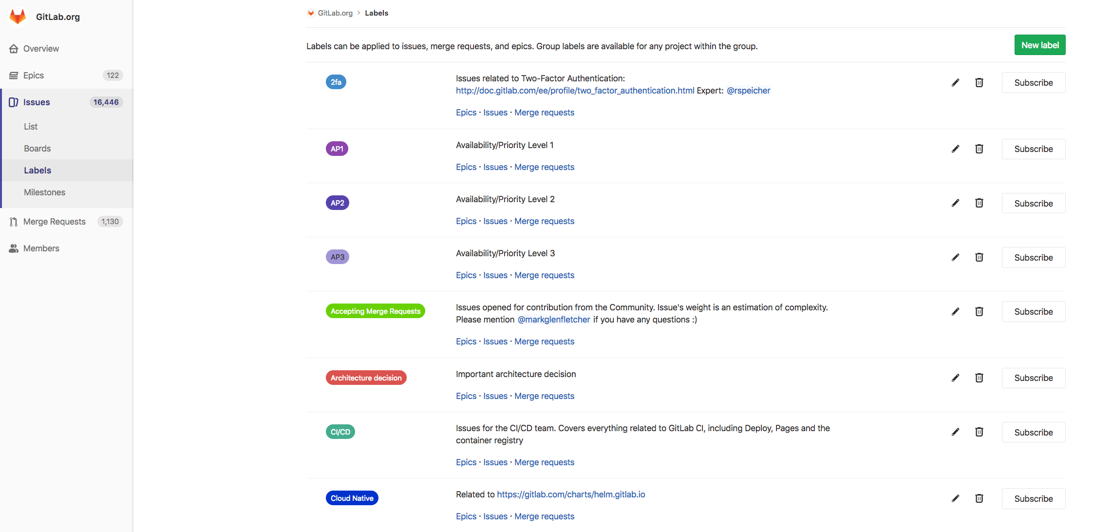 - Group labels can be assigned to any issue or merge request of any project in that group or any subgroups of the group.
